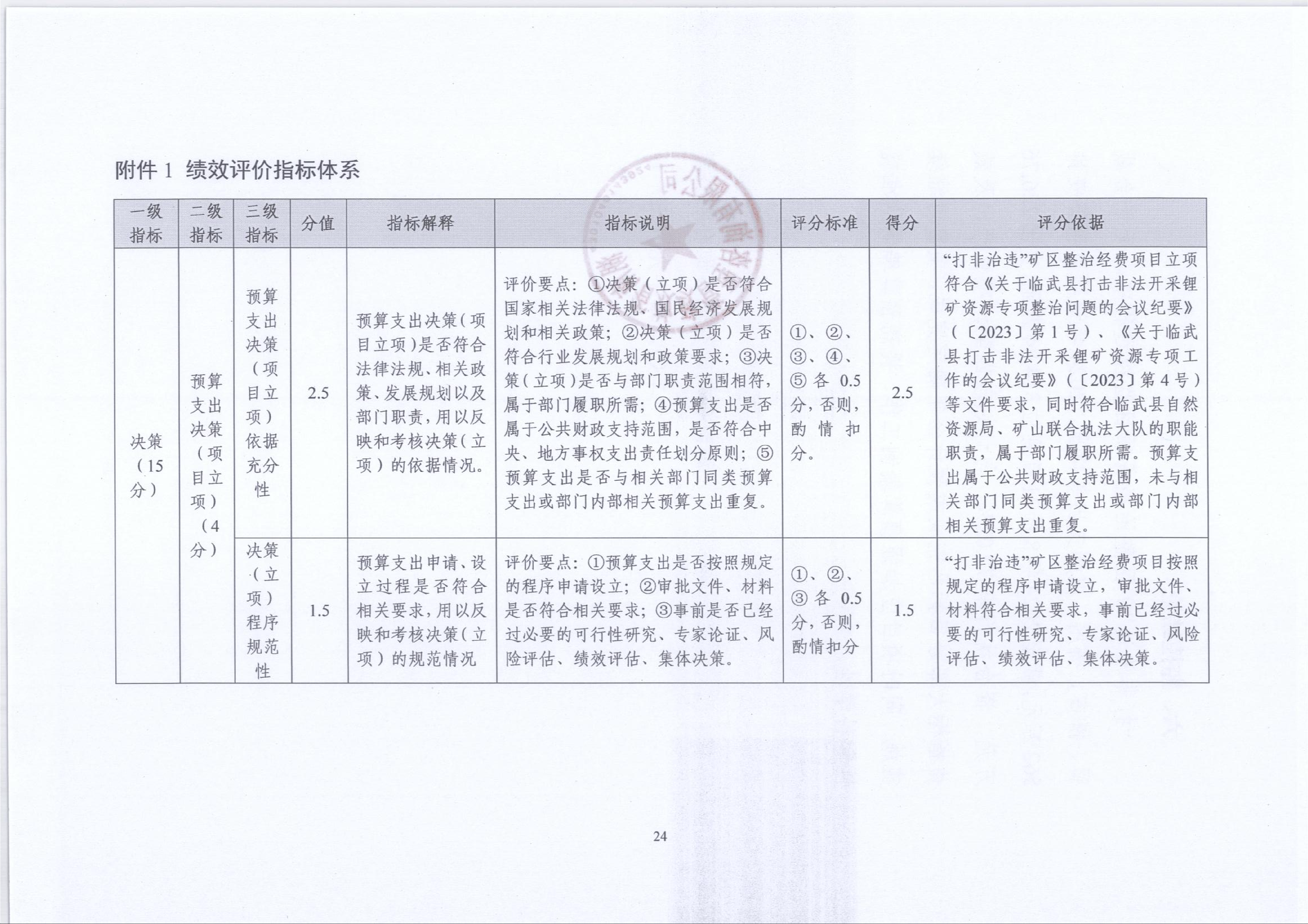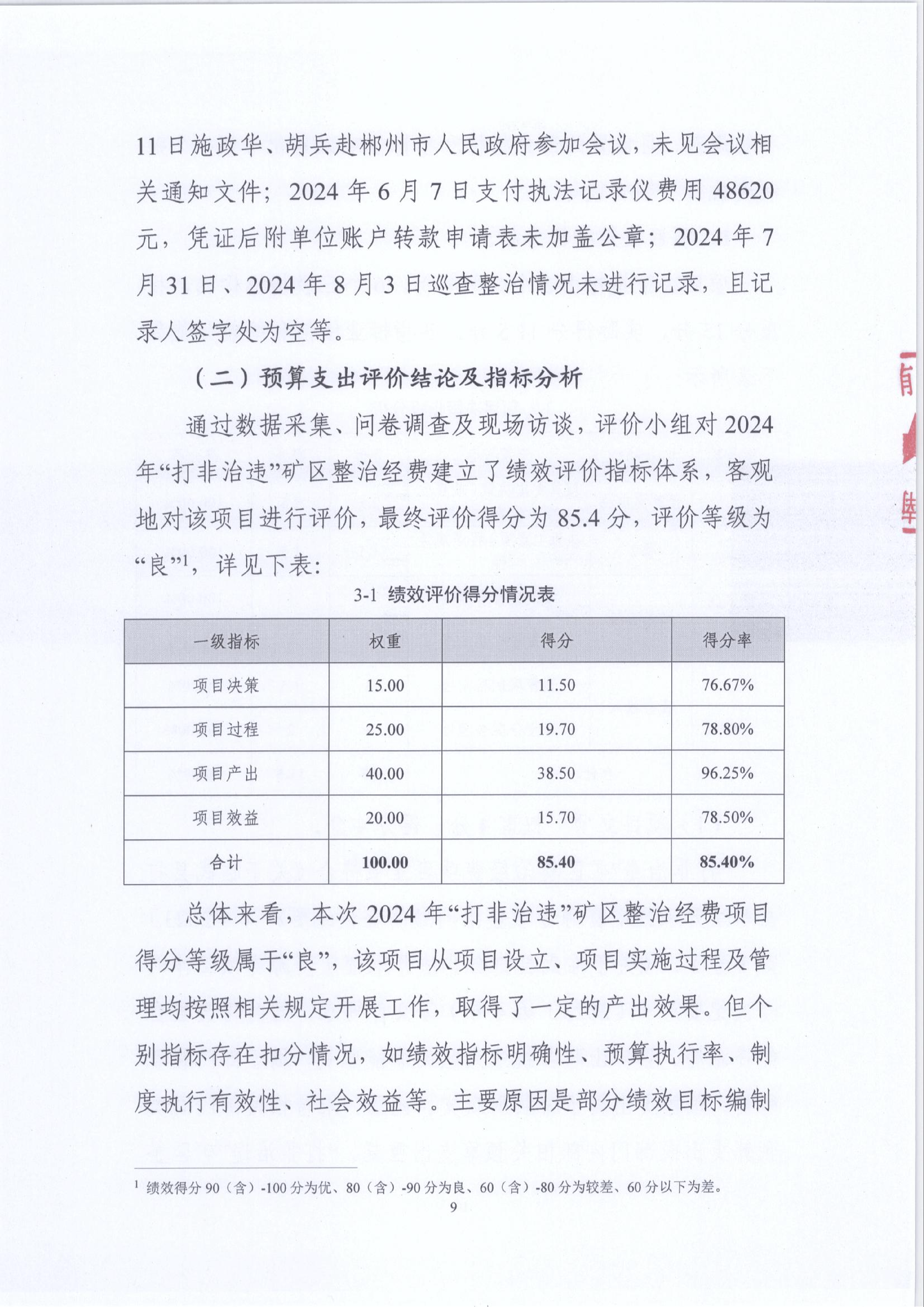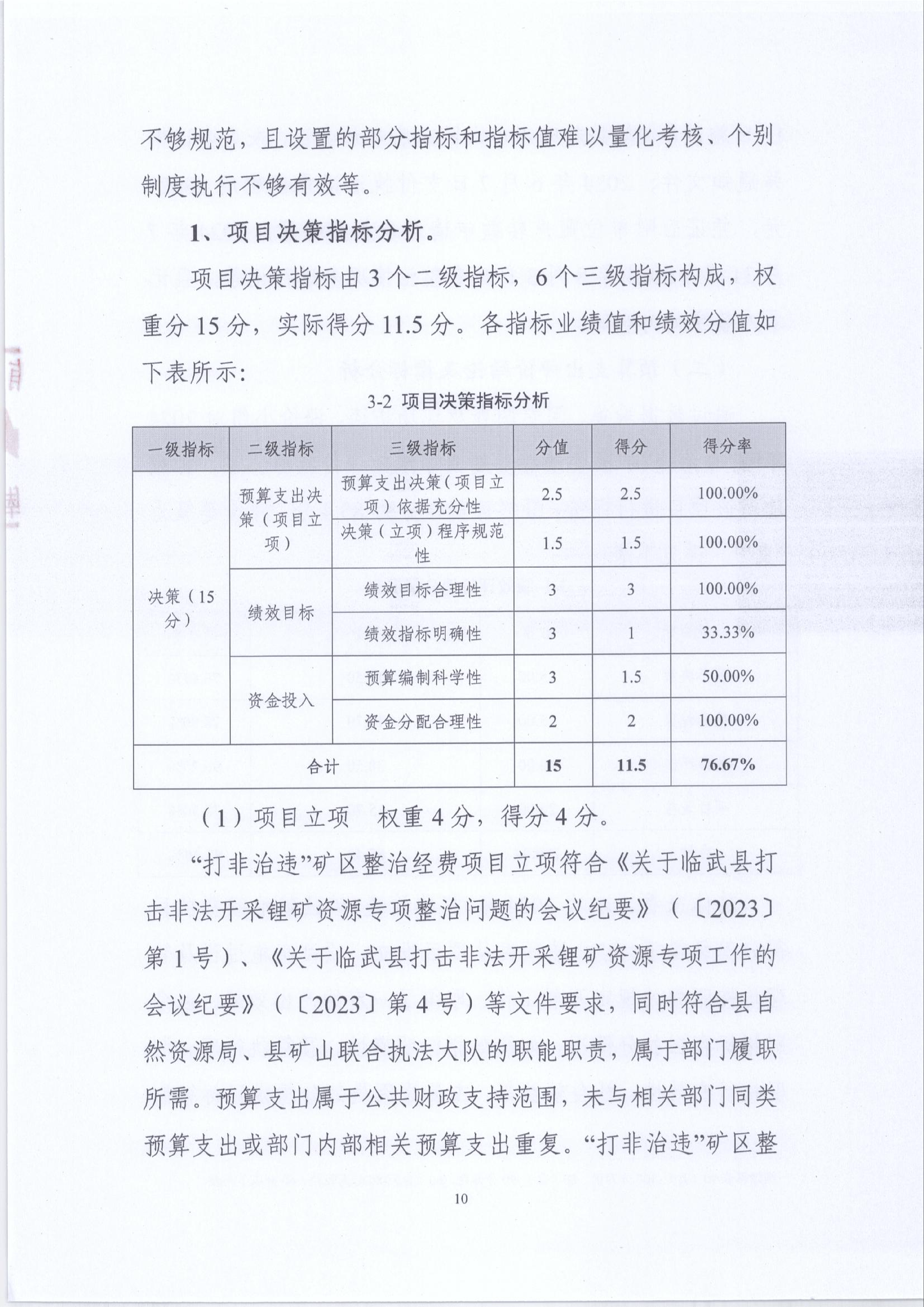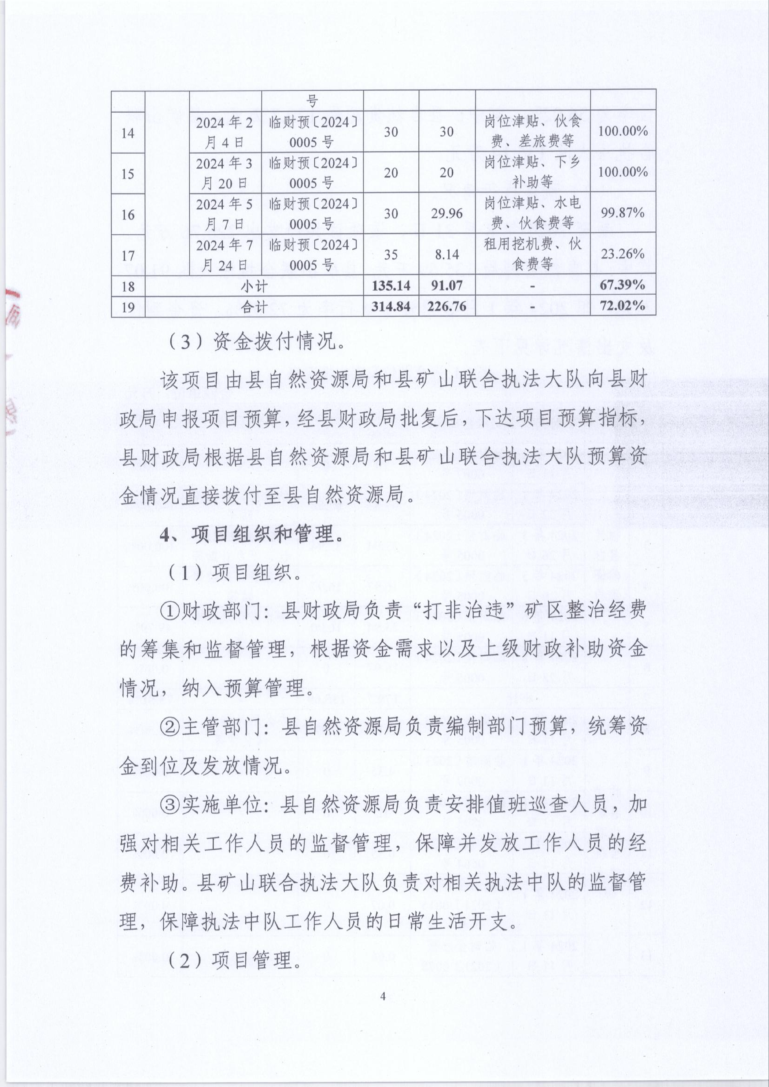 2024年“打非治违”矿区整治经费绩效运行监控报告