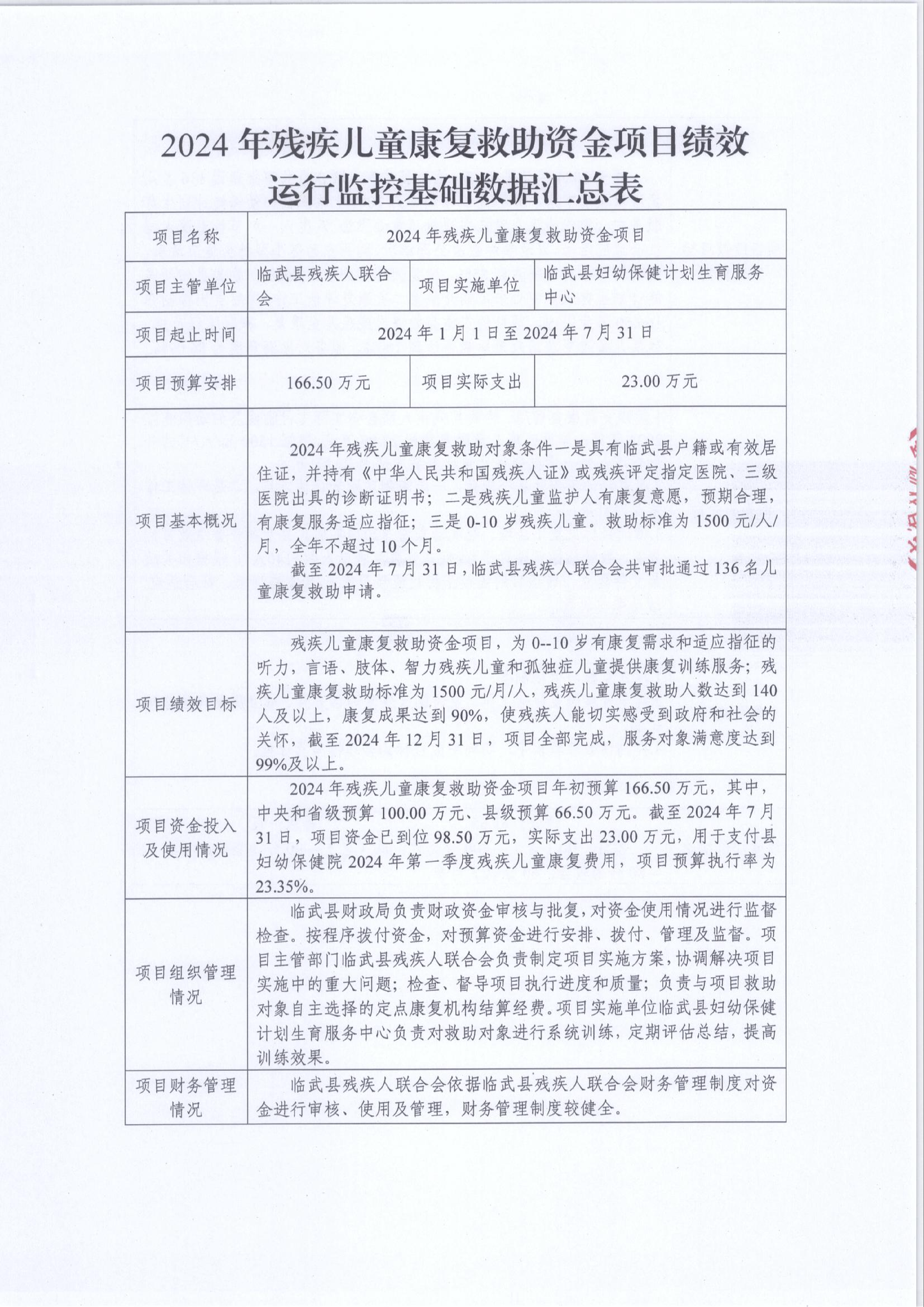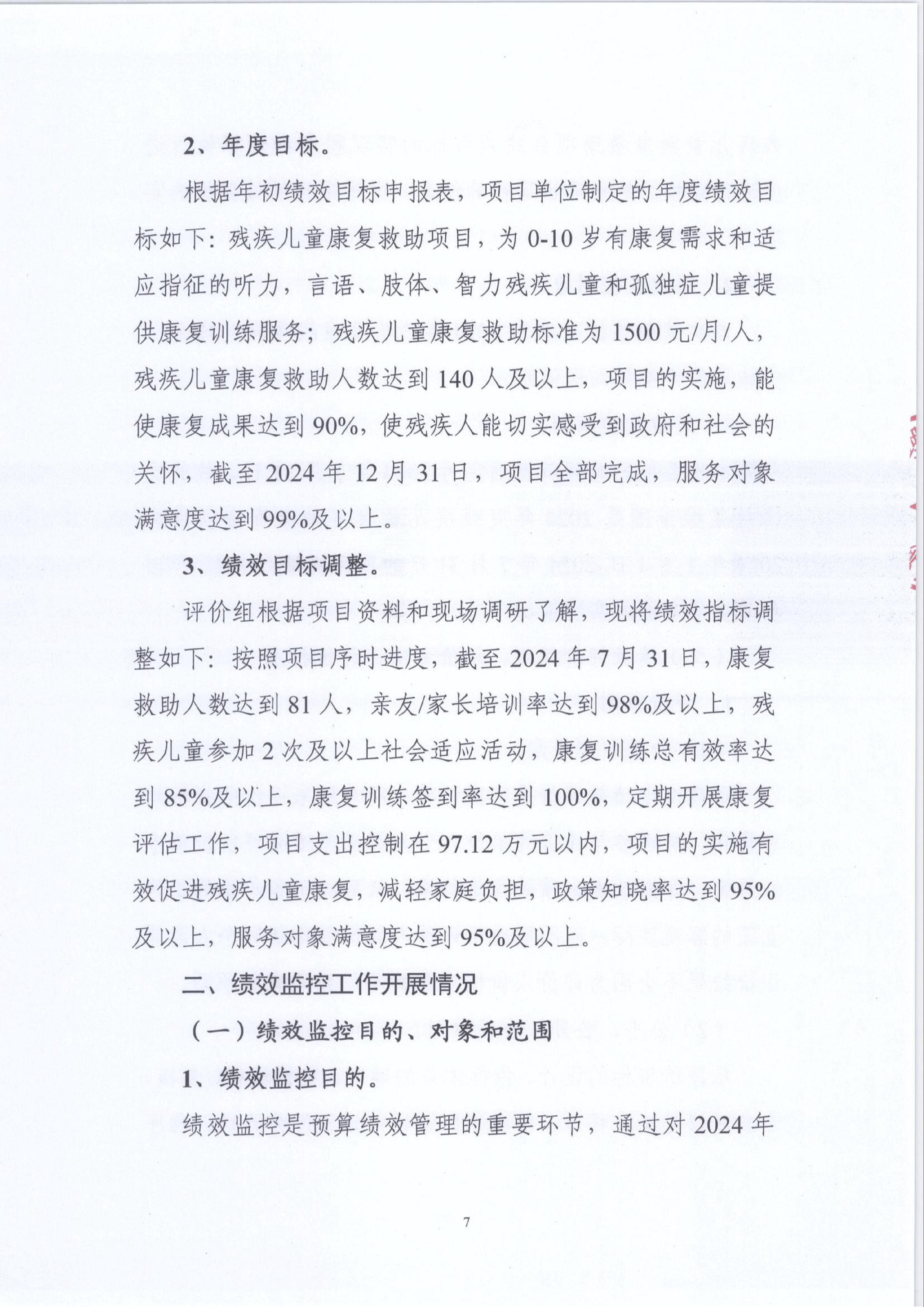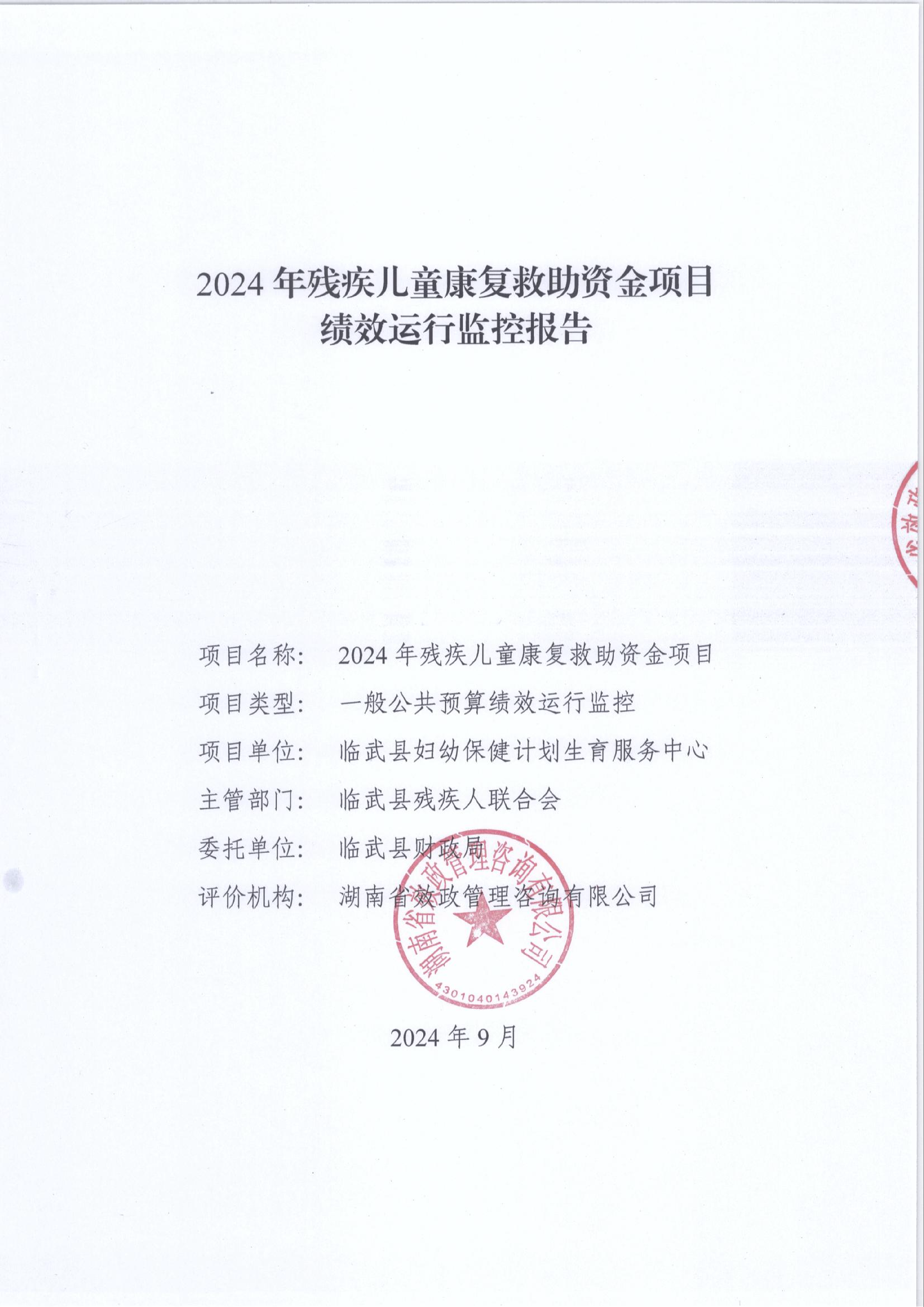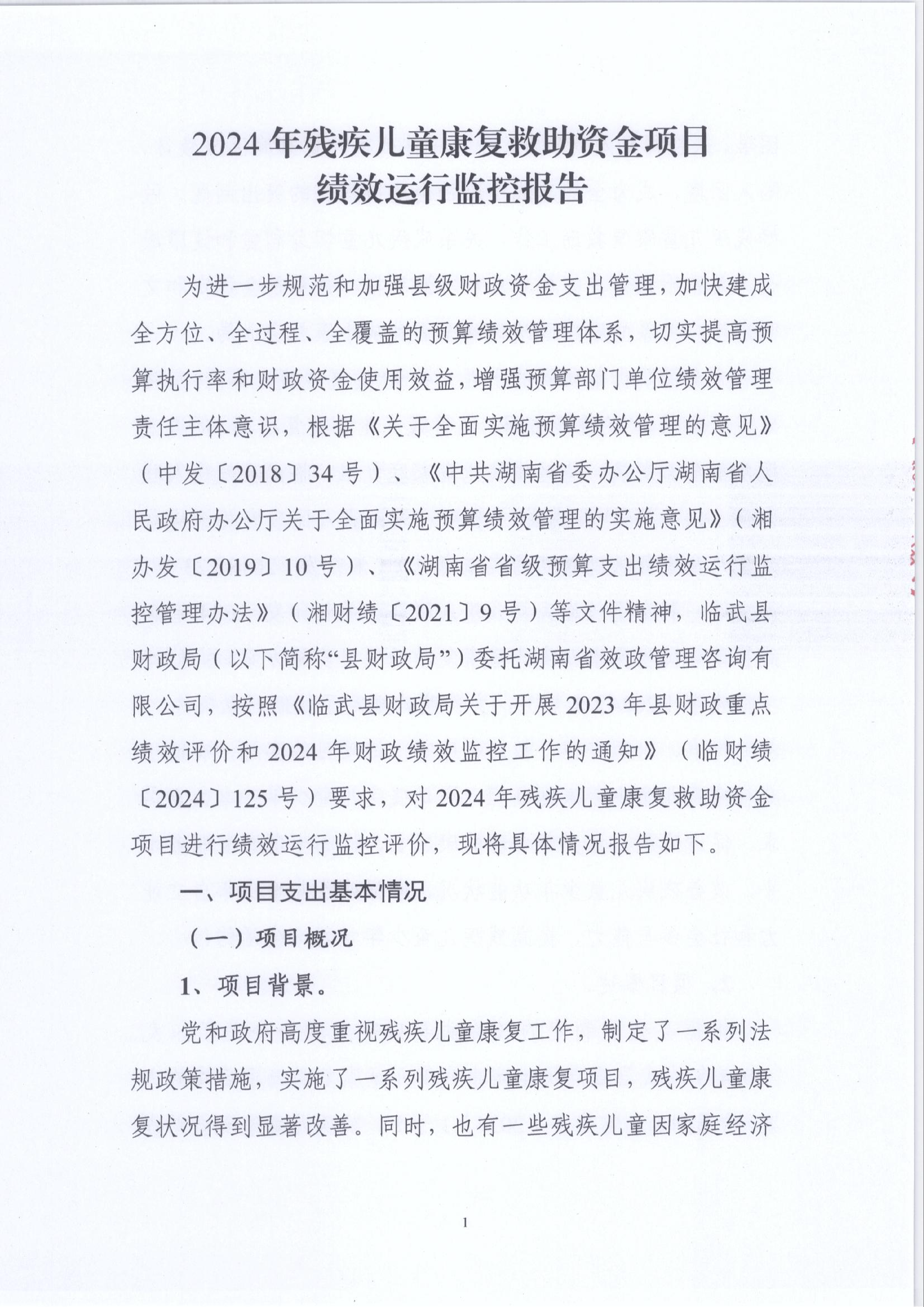 2024年残疾儿童康复救助资金项目绩效运行监控报告