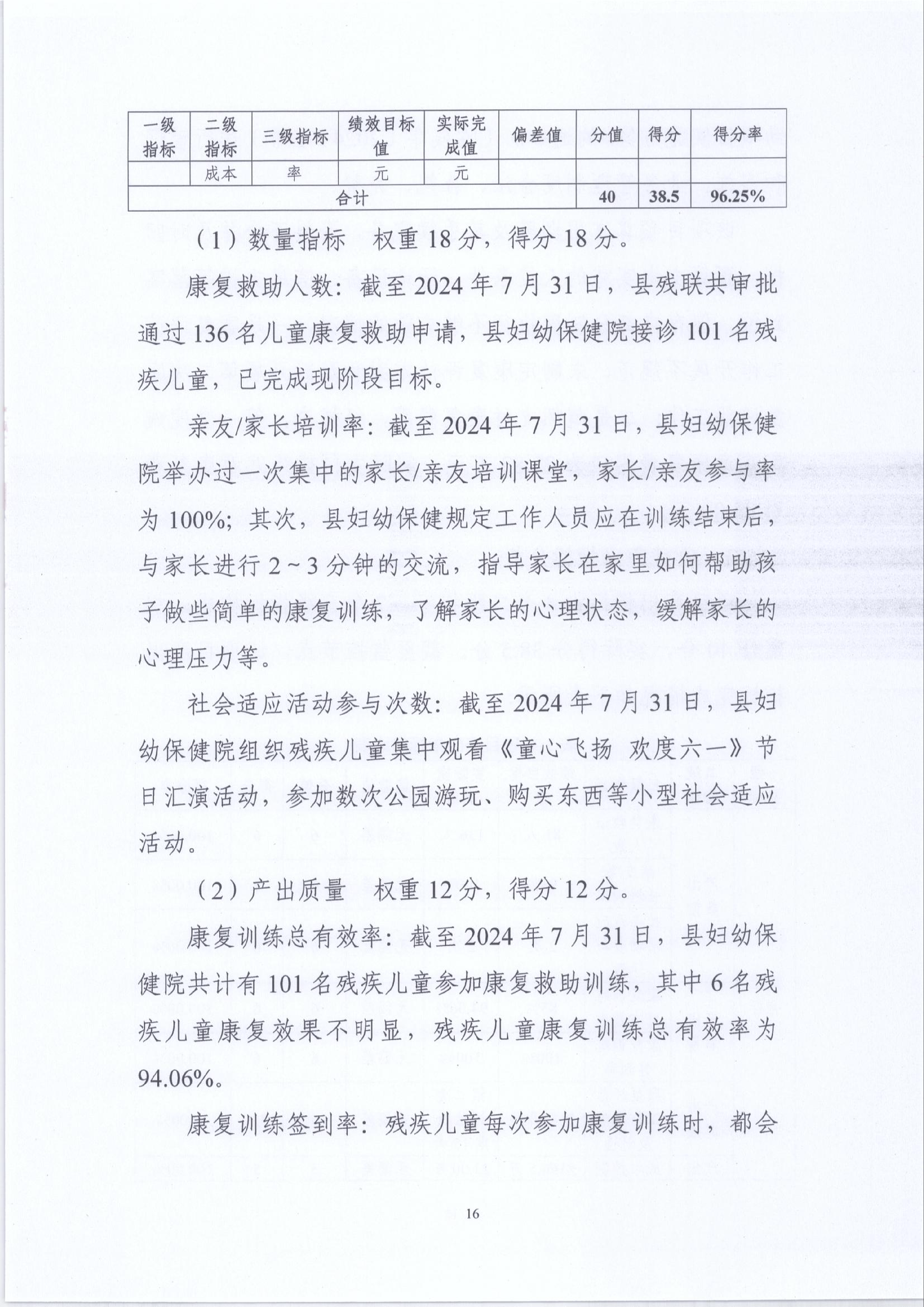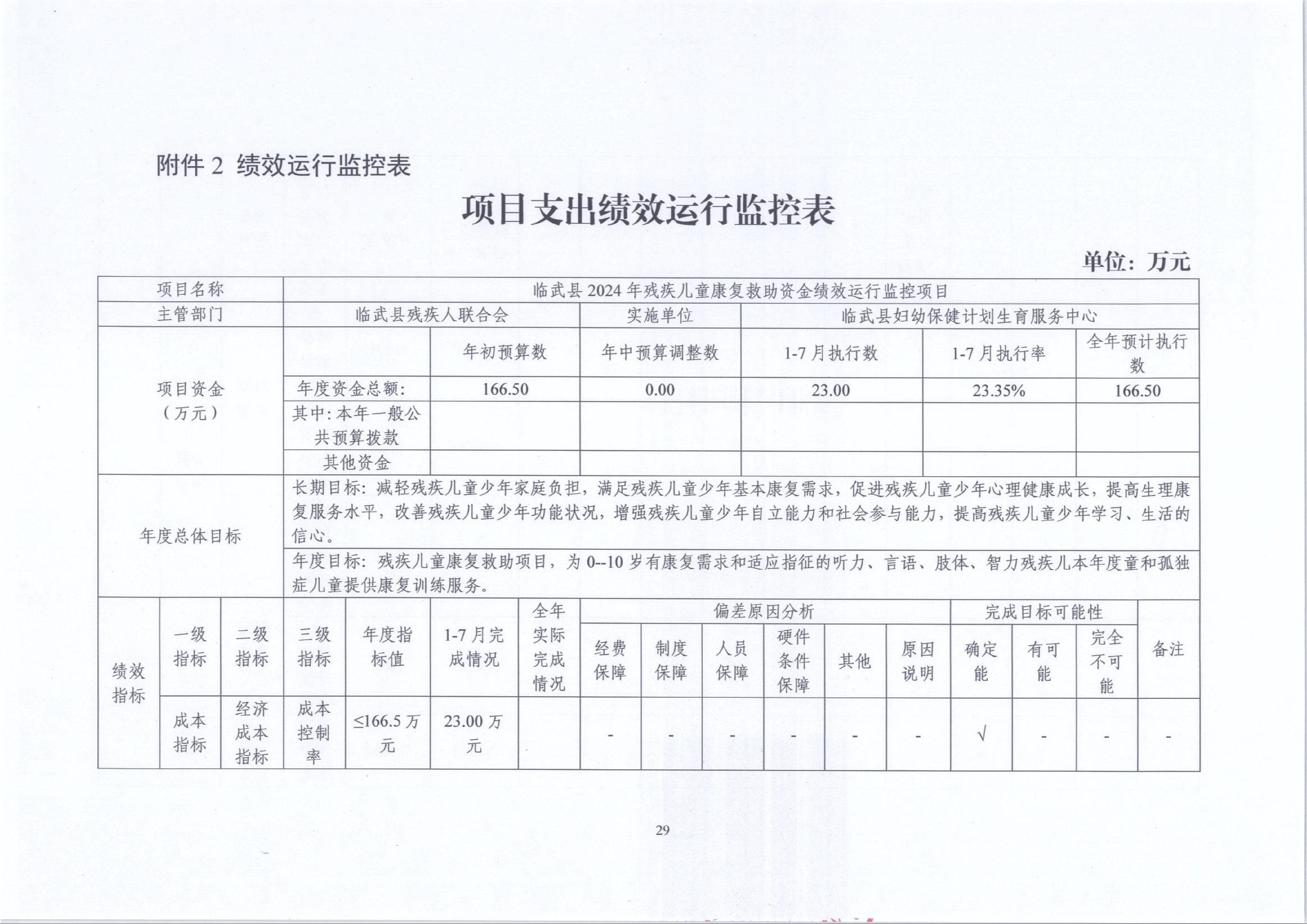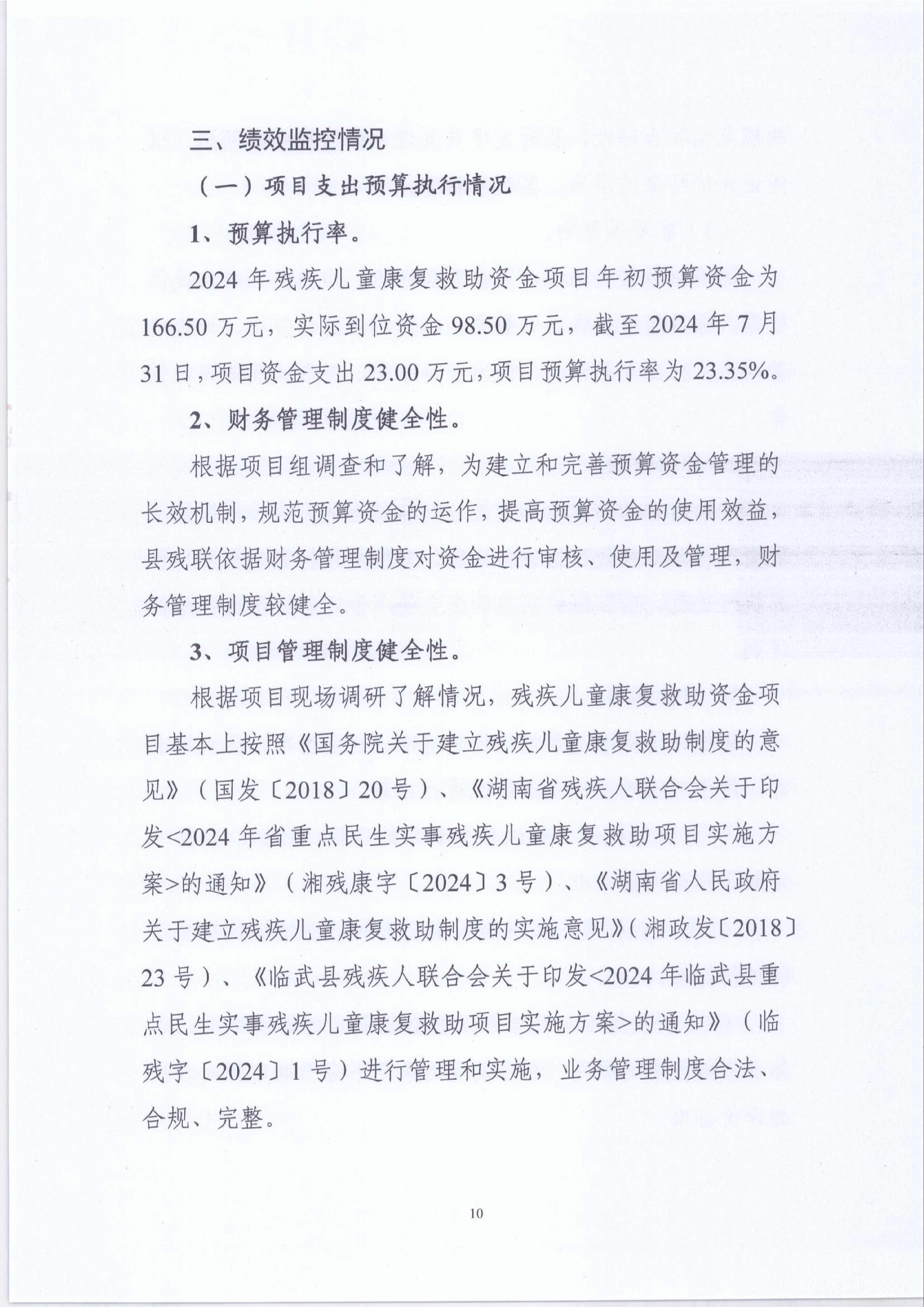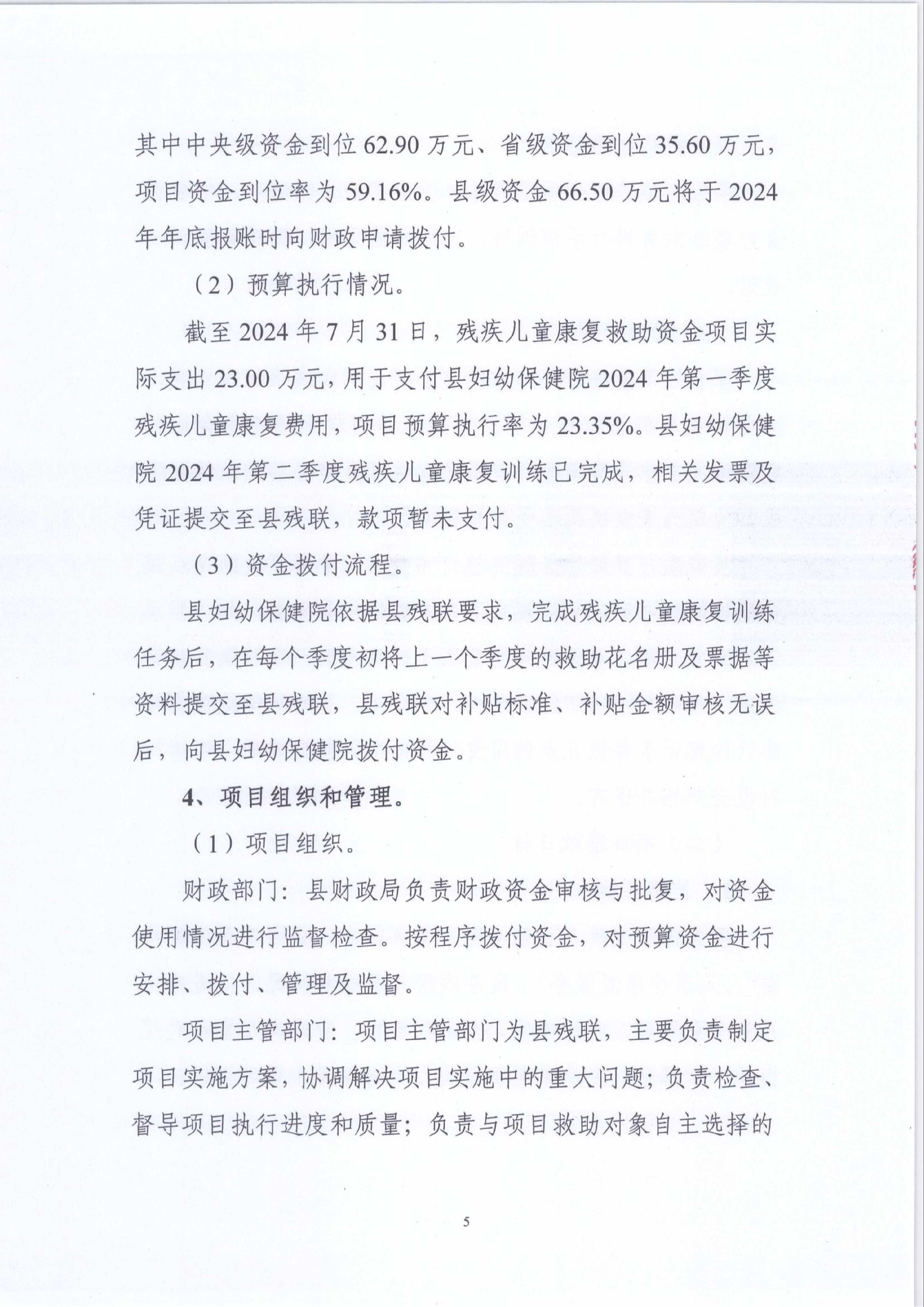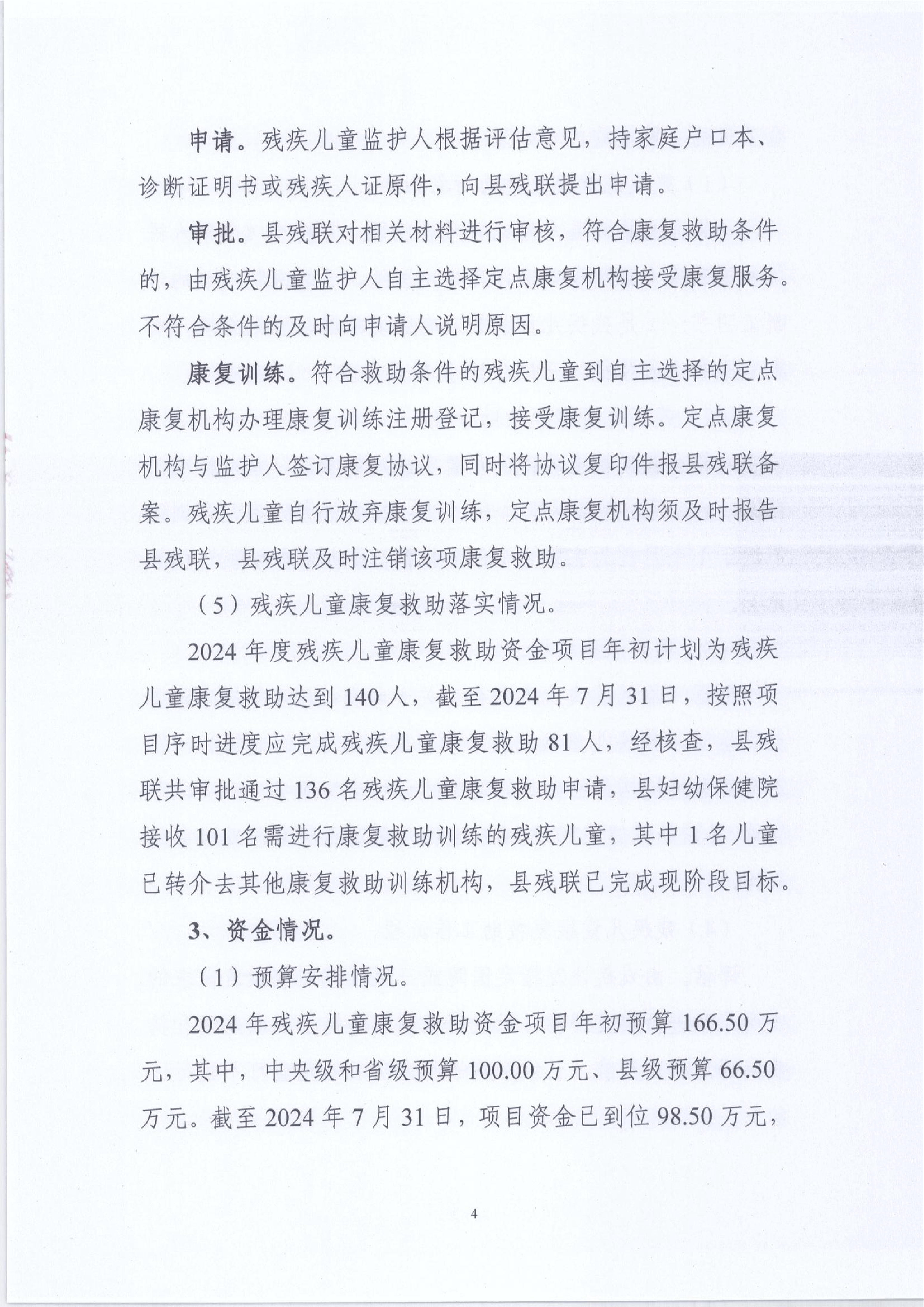 2024年残疾儿童康复救助资金项目绩效运行监控报告