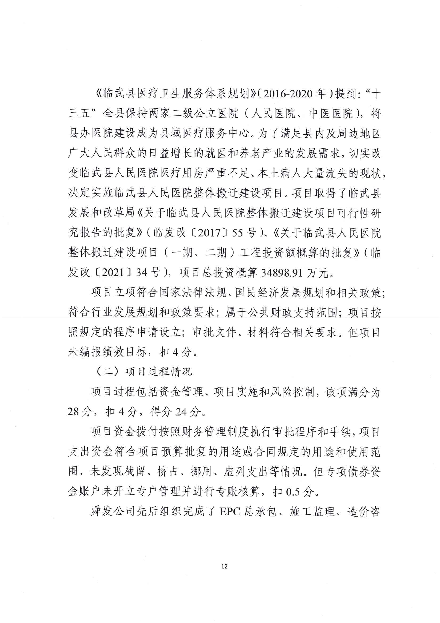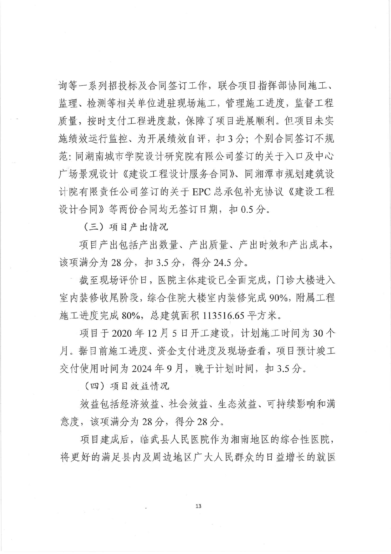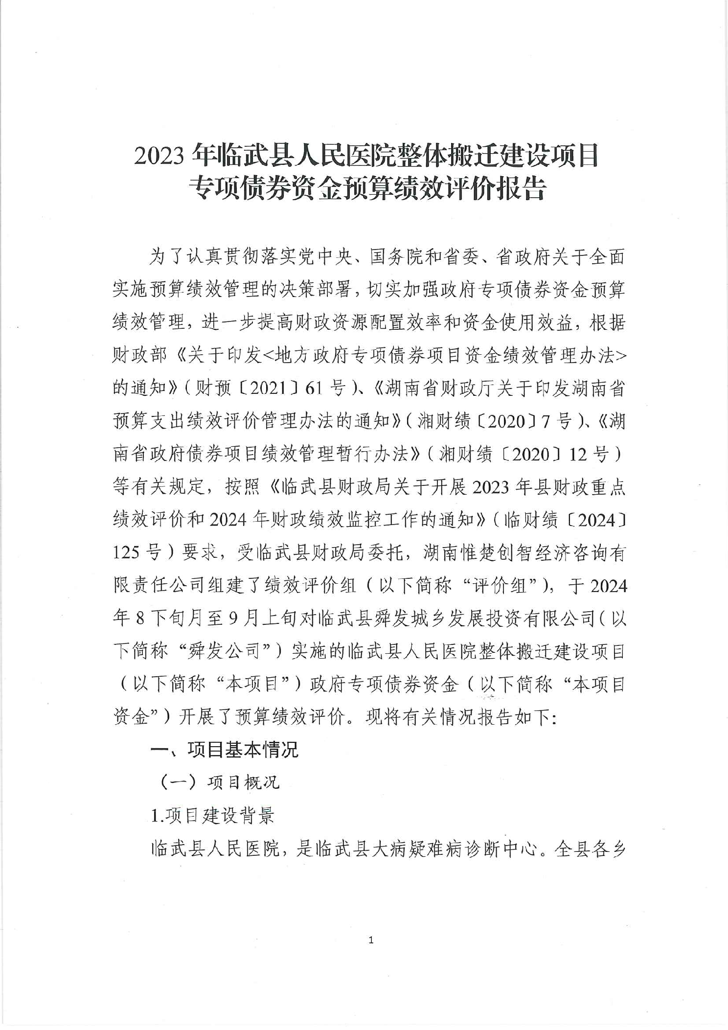 临武县人民医院整体搬迁建设项目绩效评价报告