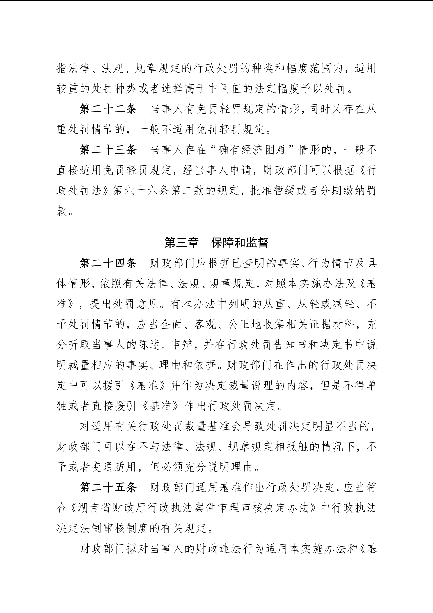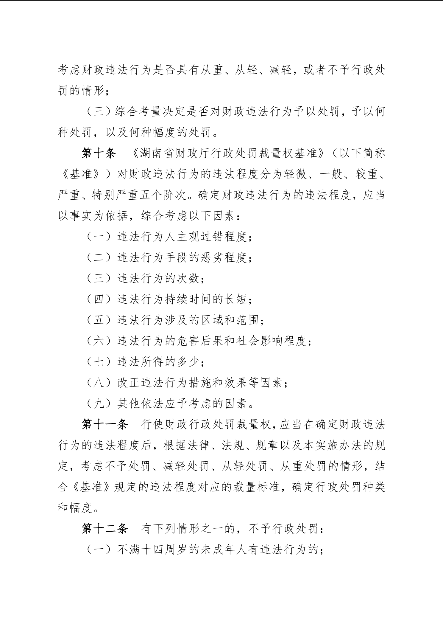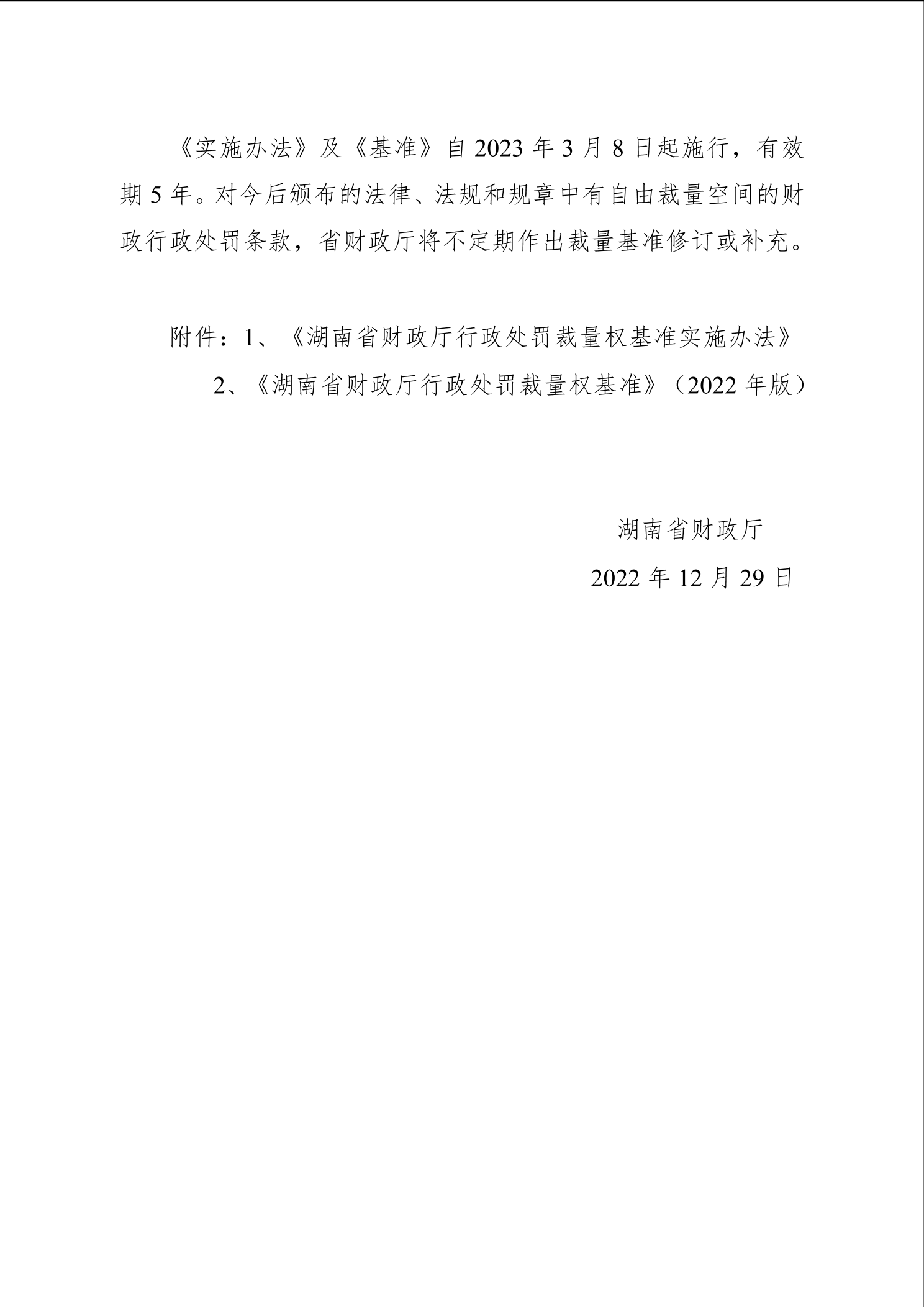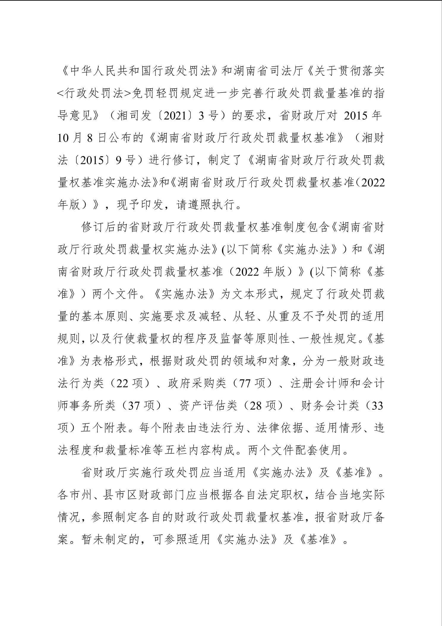 《湖南省财政厅行政处罚裁量权基准实施办法》和《湖南省财政厅行政处罚裁量权基准(2022年版)