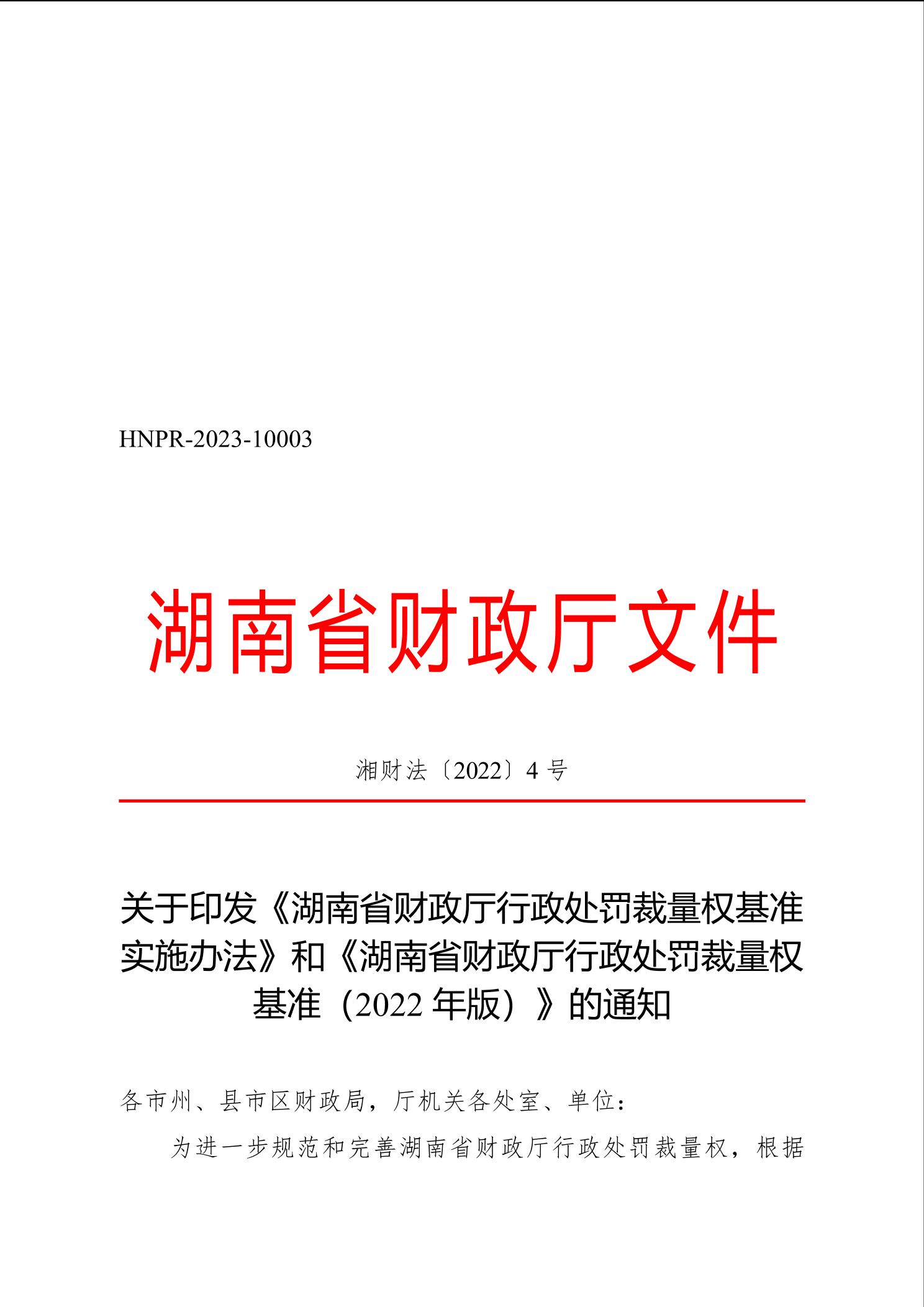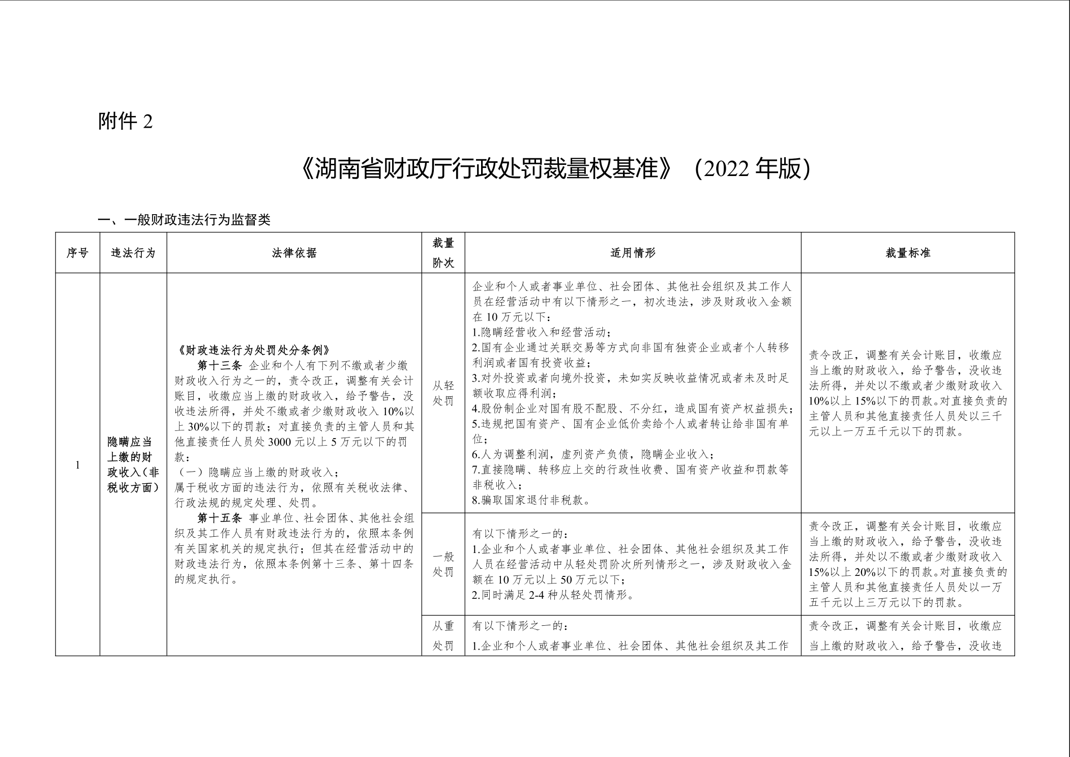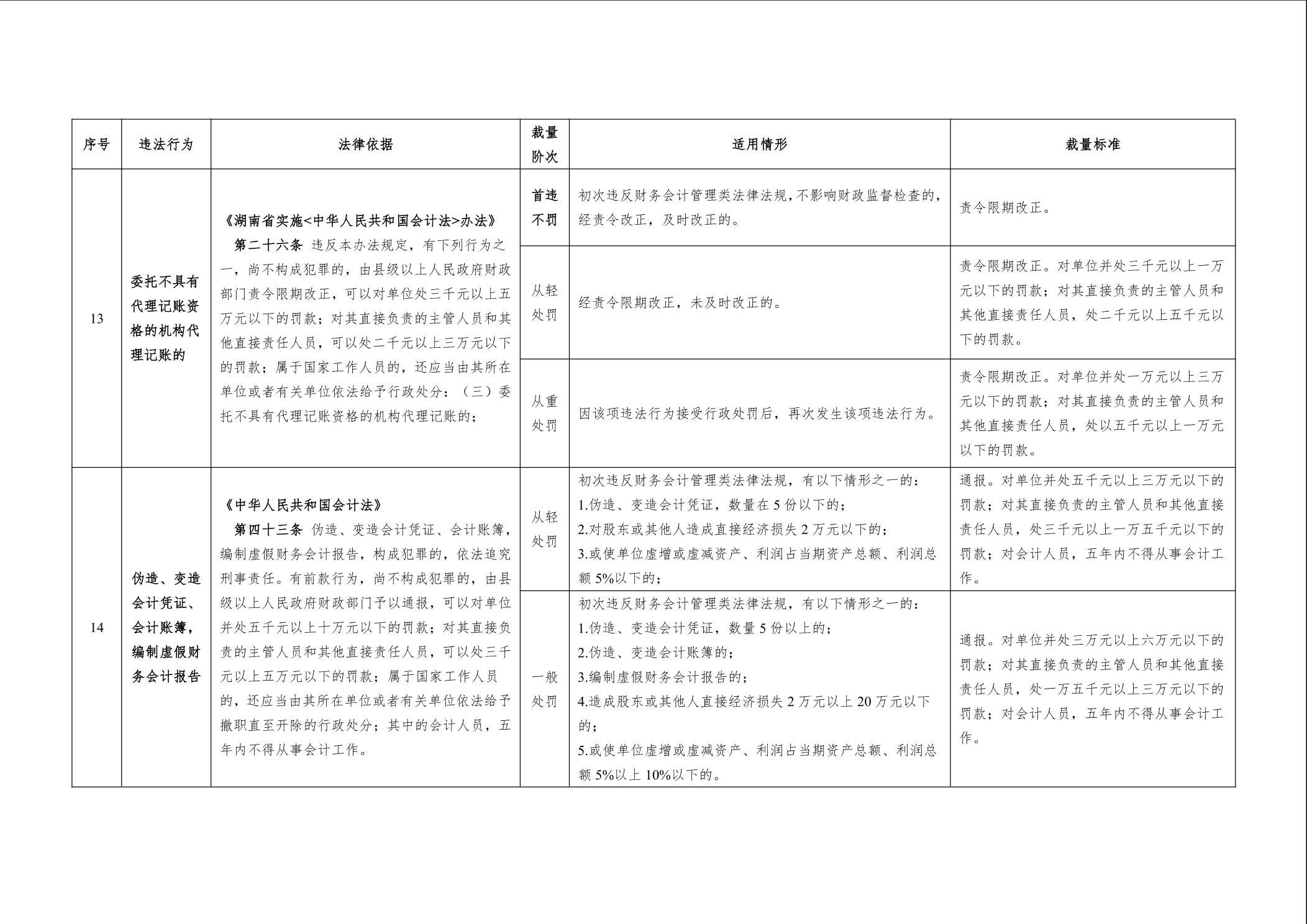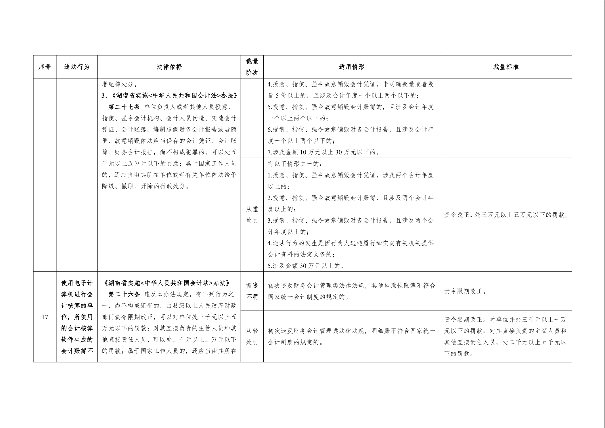 《湖南省财政厅行政处罚裁量权基准实施办法》和《湖南省财政厅行政处罚裁量权基准(2022年版)
