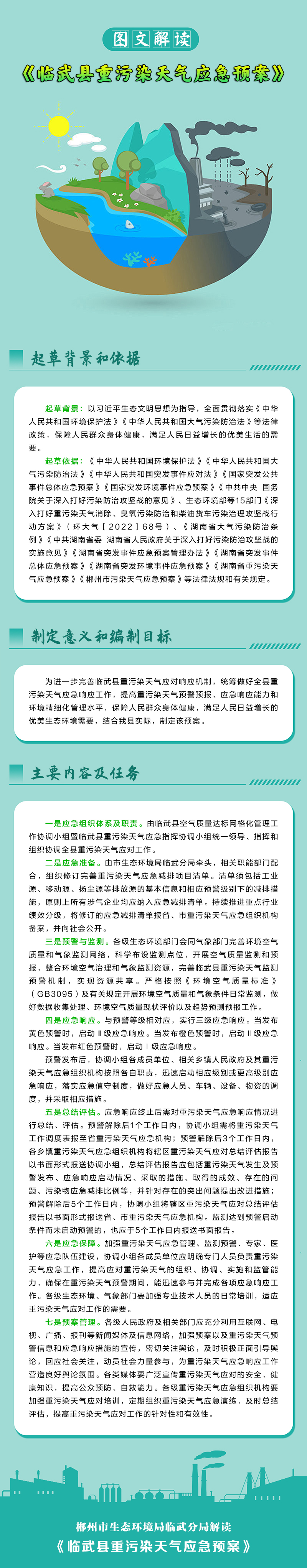 【音频解读】郴州市生态环境局临武分局解读《临武县重污染天气应急预案》 郴州市生态环境局临武分局解读《临武县重污染天气应急预案》 临武县人民政府办公室关于印发《临武县重污染天气应急预案》的通知 临武县人民政府办公室关于印发《临武县重污染天气应急预案》的通知
