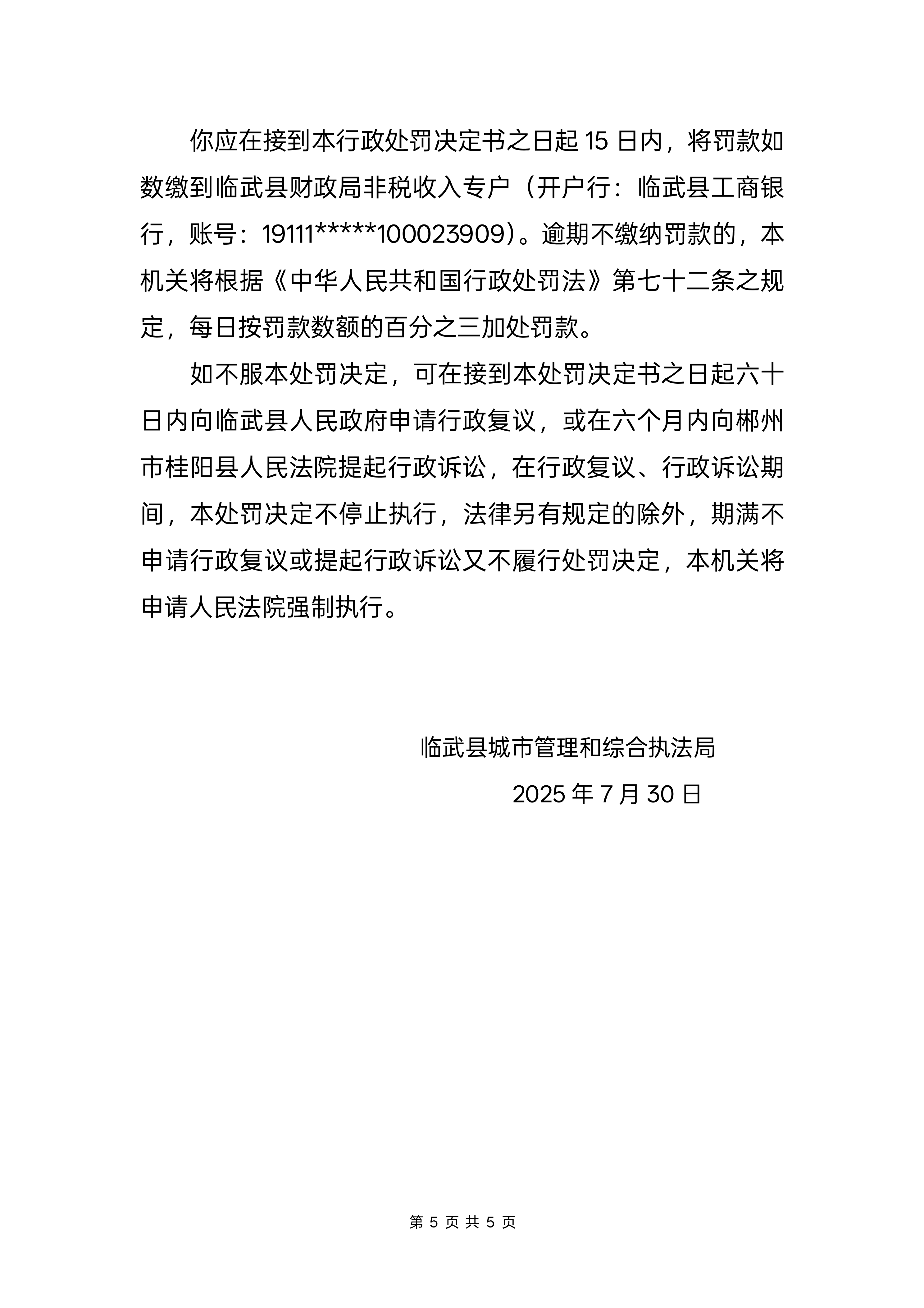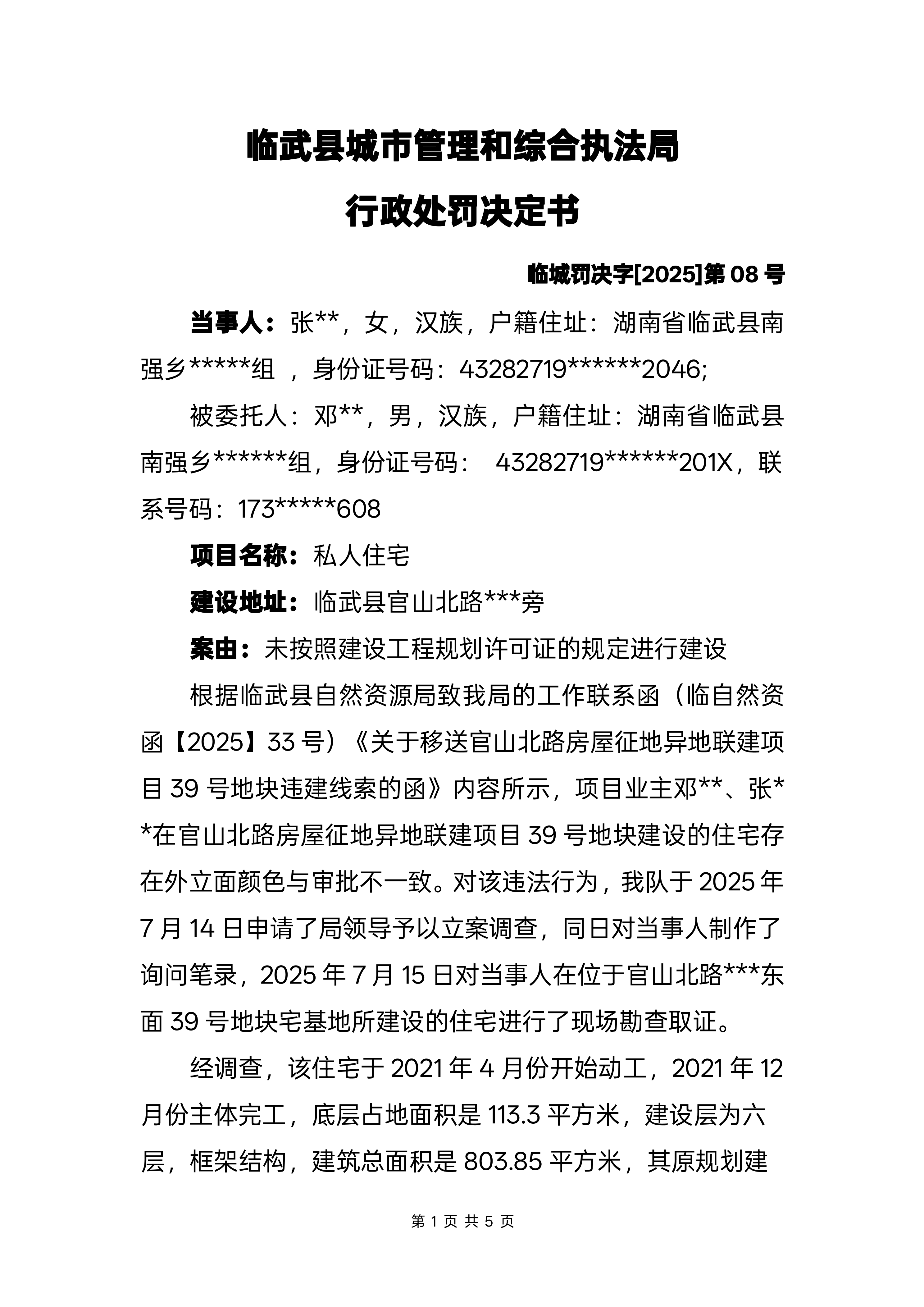 行政处罚决定书(临城罚决字〔2025〕第08号)