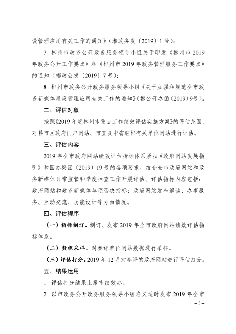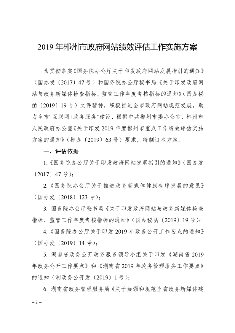 关于印发《2019年郴州市政府网站绩效评估工作实施方案》的通知